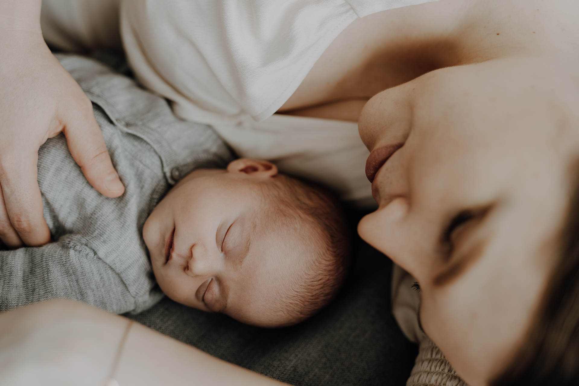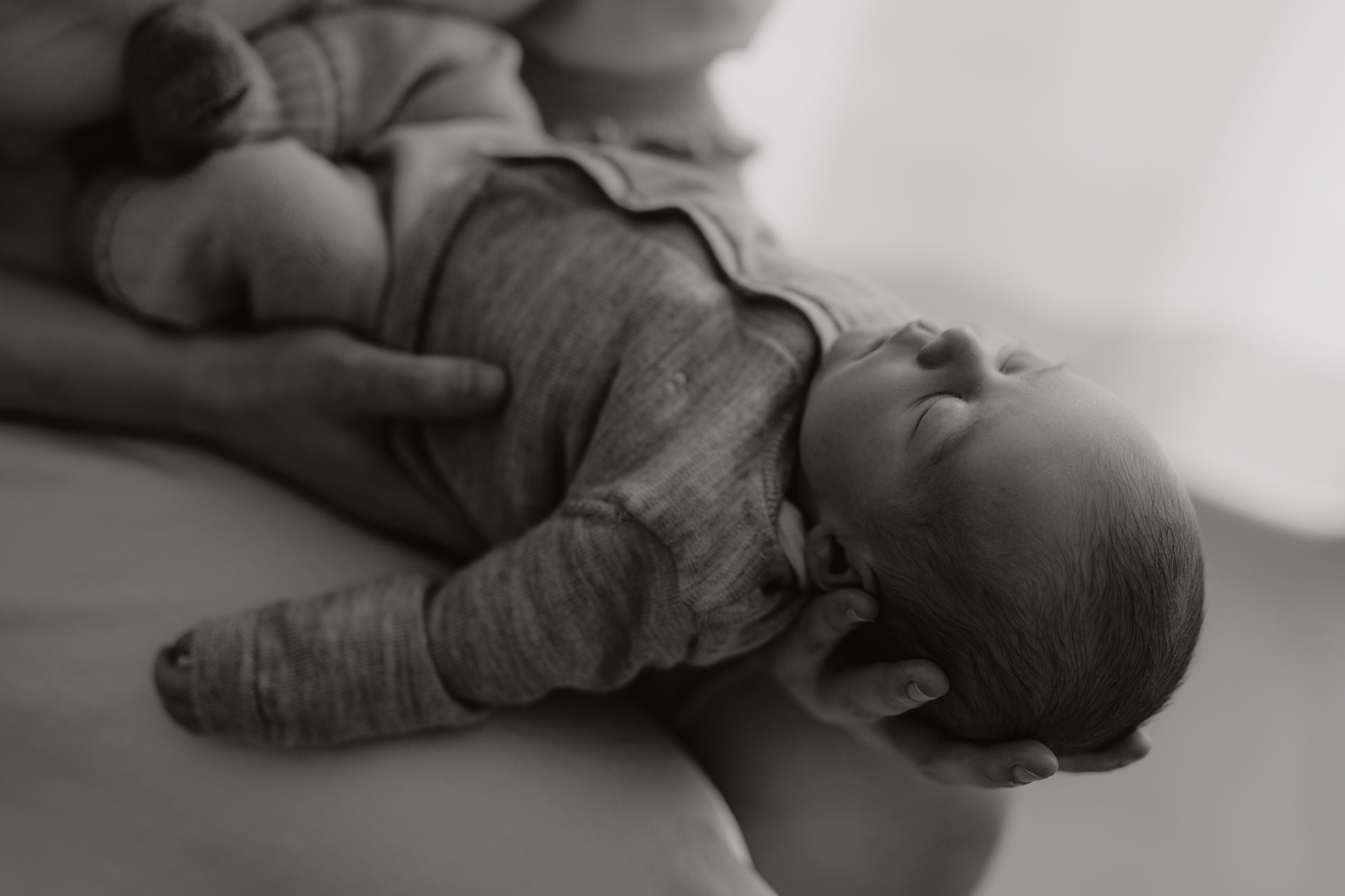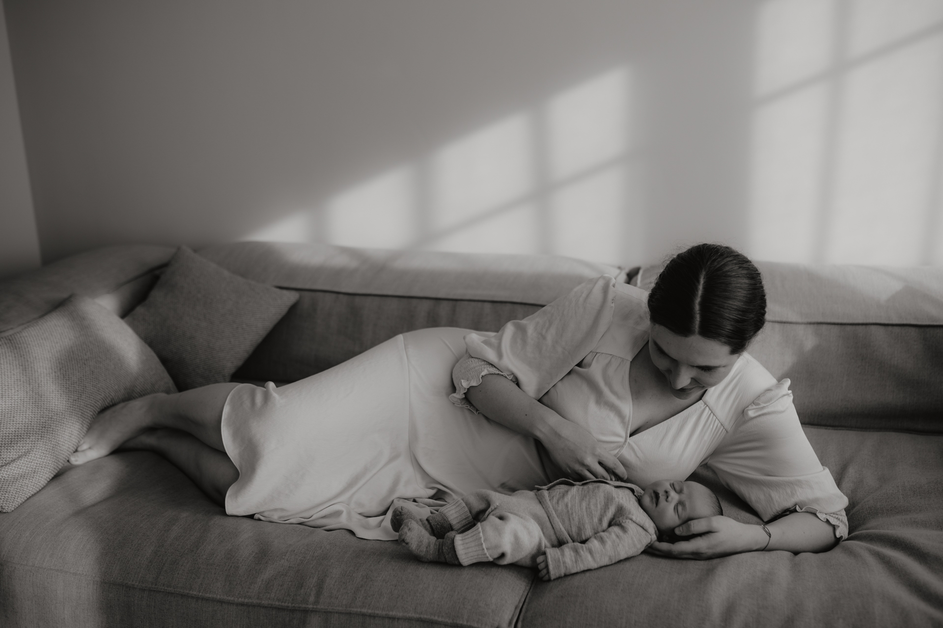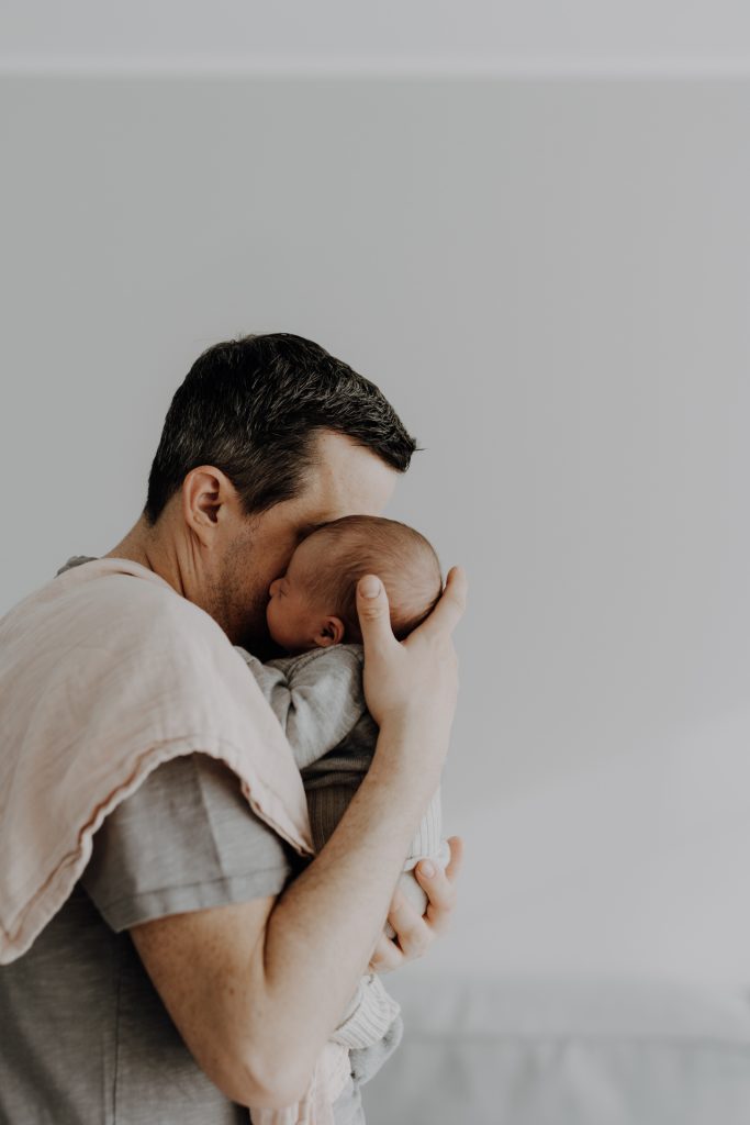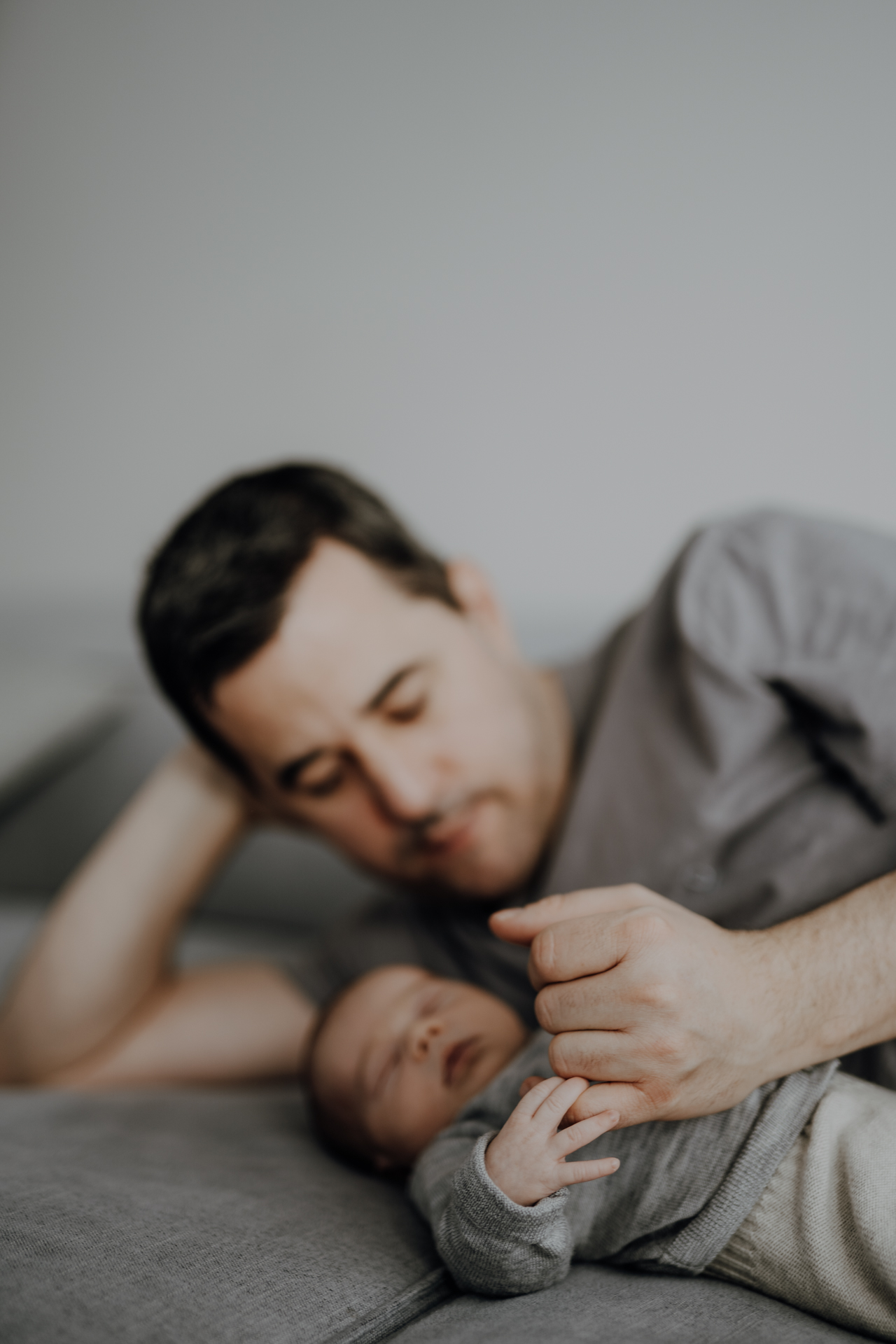 Das Newborn Homeshooting fand in dem modern eingerichteten Zuhause der frischgebackenen Eltern statt. Die weißen Vorhänge fingen das sanfte Tageslicht ein und tauchten die Räume in eine ruhige, warme Atmosphäre. Die kleine Louise, noch nicht einmal eine Woche alt, schlief während des Shootings fast durchgehend und ließ uns so die zarten und ruhigen Momente eines Neugeborenen einfangen.